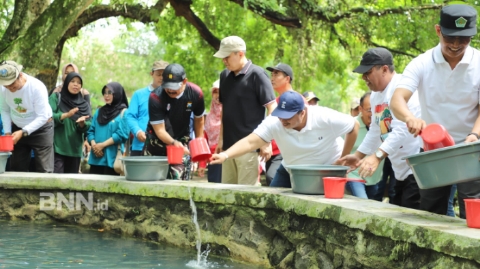 Peringatan Hari Cinta Puspa dan Satwa Nasional turut diisi dengan aksi tebar 1.200 benih ikan tawes, hasil kolaborasi Dinas Lingkungan Hidup dan Dinas Ketahanan Pangan dan Perikanan.
