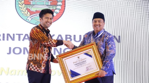Penghargaan dari Pemerintah Provinsi Jawa Timur tersebut diserahkan langsung oleh Wakil Gubernur Jawa Timur, Dr. Emil Elestianto Dardak, B.Bus., M.Sc., Ph.D., kepada Bupati Jombang Warsubi, S.H., M.Si., pada acara penganugerahan KOVABLIK 2025 yang digelar di Ballroom Lantai 3 Fairfield Hotel by Marriott Surabaya, Jumat (12/12/2025) sore.