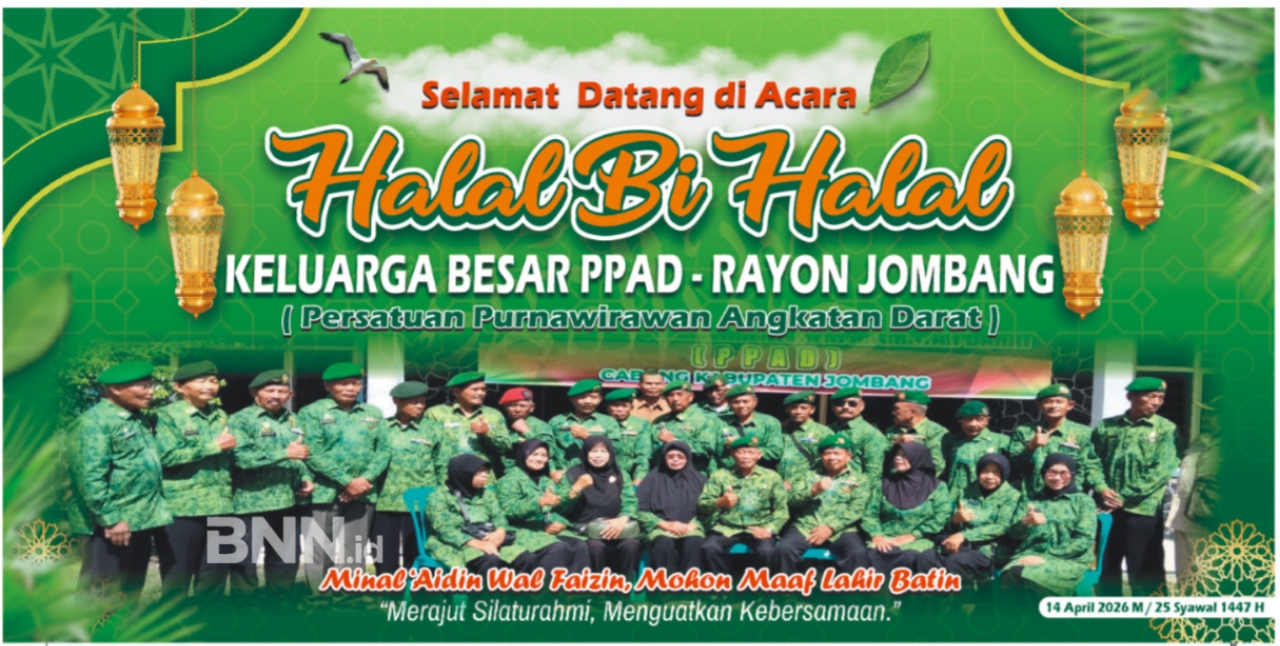 JOMBANG | Bangkit Nusantara News.id – Keluarga besar Persatuan Purnawirawan Angkatan Darat (PPAD) Rayon Jombang menggelar kegiatan Halal Bihalal dalam suasana penuh kehangatan dan kebersamaan, Senin (14/4/2026).
